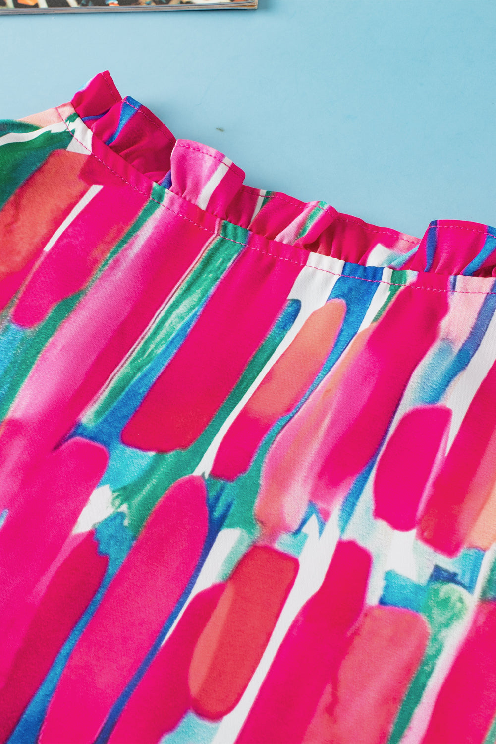 Tag Color Pink, Print Abstract, Season Summer, All In Stock, Tops Sale, Style Southern Belle, Sleeve Ruffle Sleeve Brand None