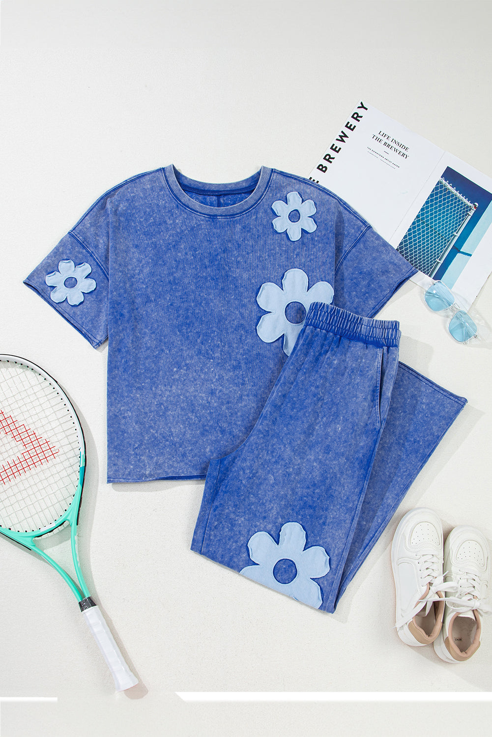Tag , DL Exclusive, Occasion Daily, Craft Washed, Style Casual, Season Summer, Silhouette Wide Leg, Print Vintage Floral, Color Blue, Arrive In 2 Weeks, Craft Applique Brand None