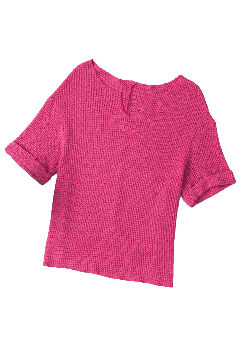 Tag | DL Exclusive, Fabric Waffle Knit, Occasion Daily, Color Pink, Style Casual, Print Solid Color, Season Summer, All In Stock, Tops Sale | Brand | None |