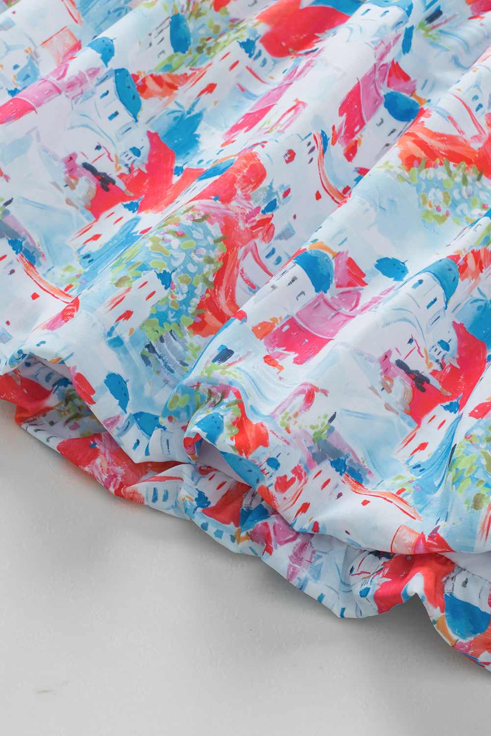 • Lightweight material with a babydoll style and colorful abstract cityscape pattern silhouette