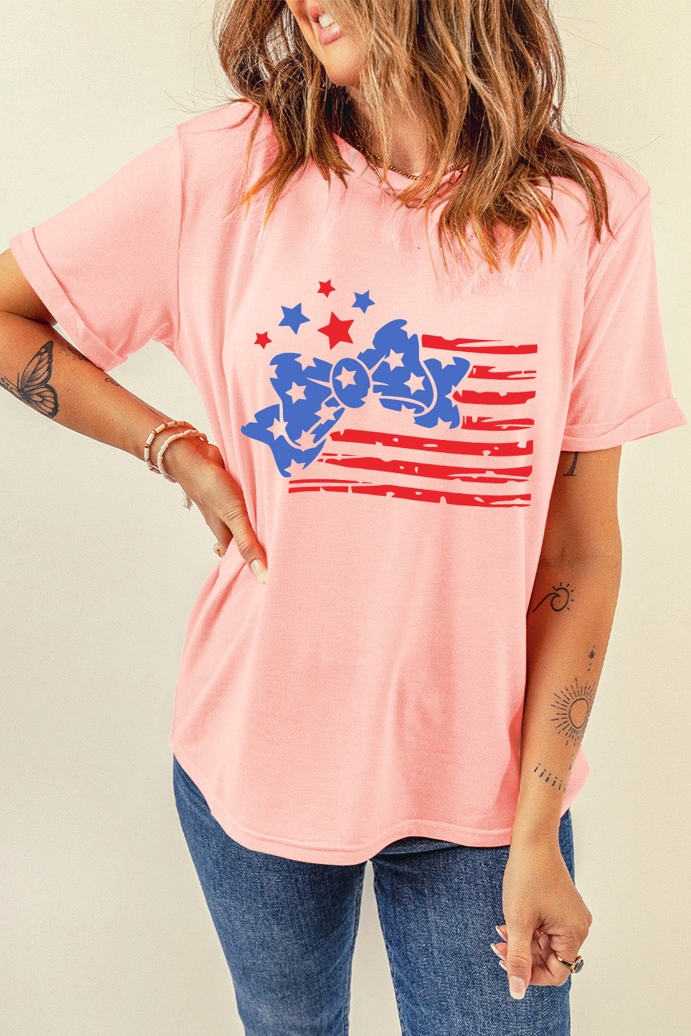 - This patriotic tee with the bow knot design is ideal for a trendy look.