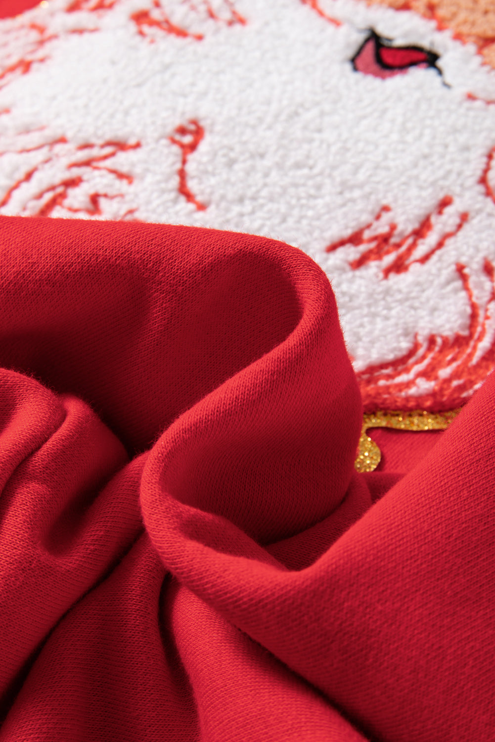 - The chic sweatshirt is a festive choice for the Christmas season.