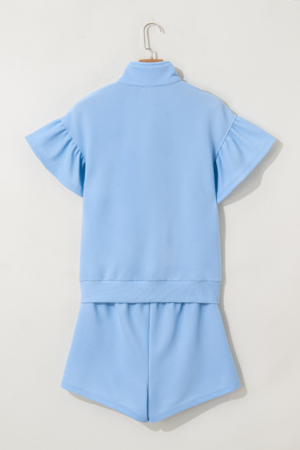 Tag | , Fabric Ribbed, Occasion Daily, Style Casual, Print Solid Color, Season Summer, All In Stock, Color Blue, Sleeve Ruffle Sleeve | Brand | None |