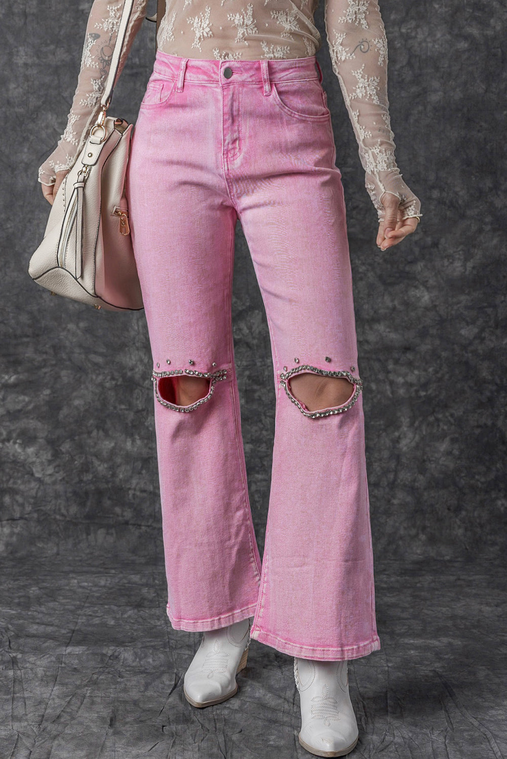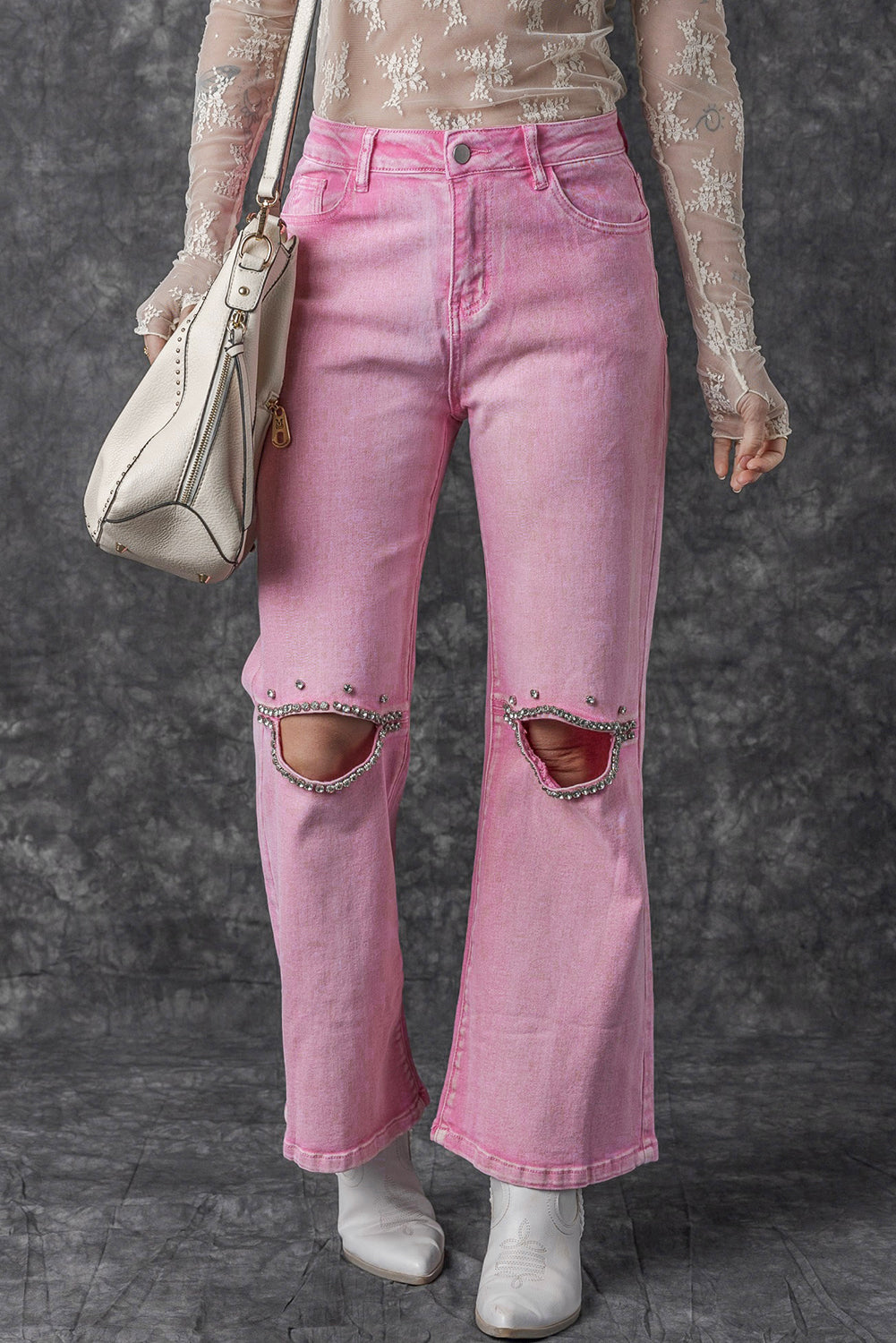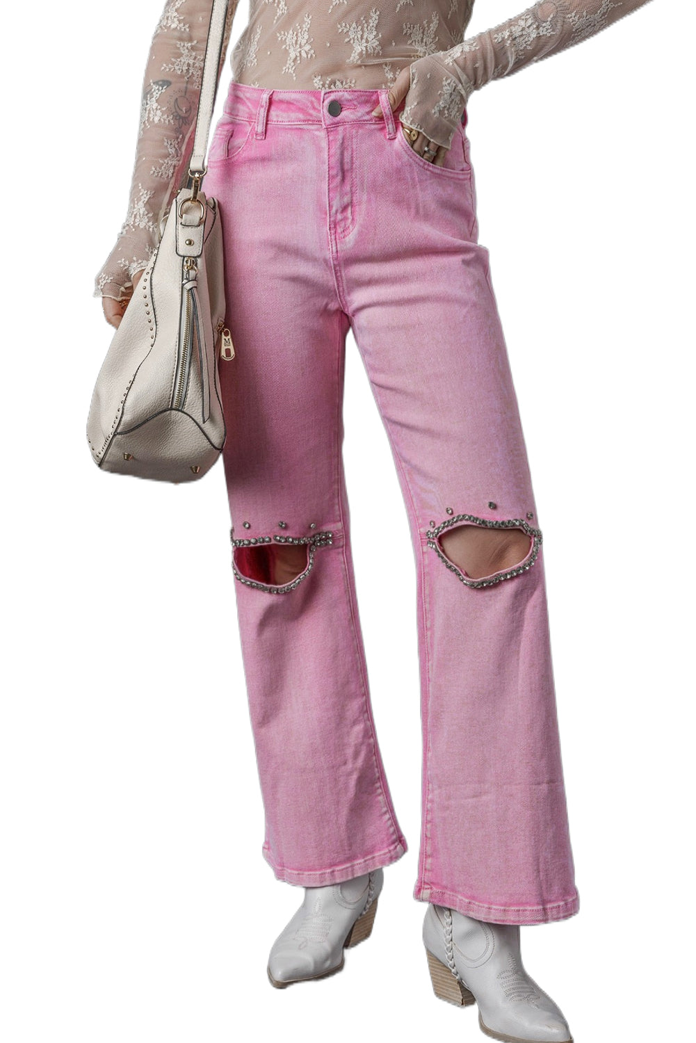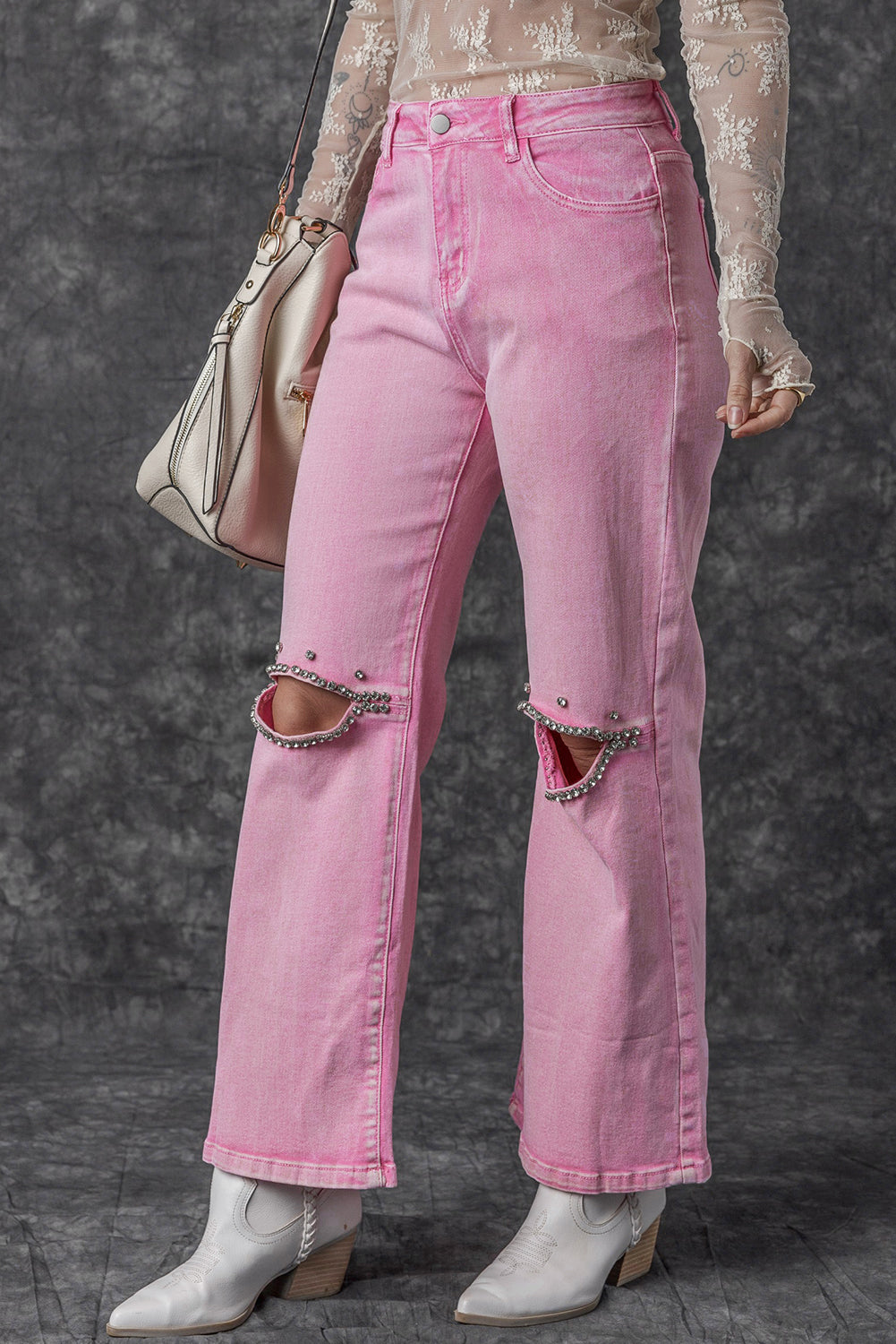 Tag | DL Exclusive, DL Chic, Craft Distressed, Fabric Denim, Occasion Daily, Craft Washed, Color Pink, Print Solid Color, Craft Rhinestone, Silhouette Wide Leg, Season Fall & Autumn, Bottoms Sale, Style Southern Belle | Brand | None |
