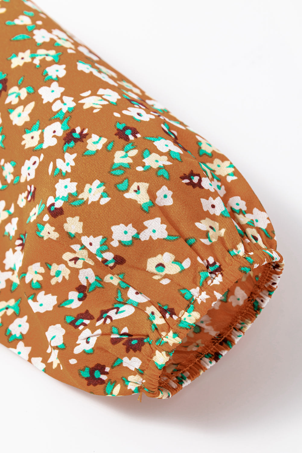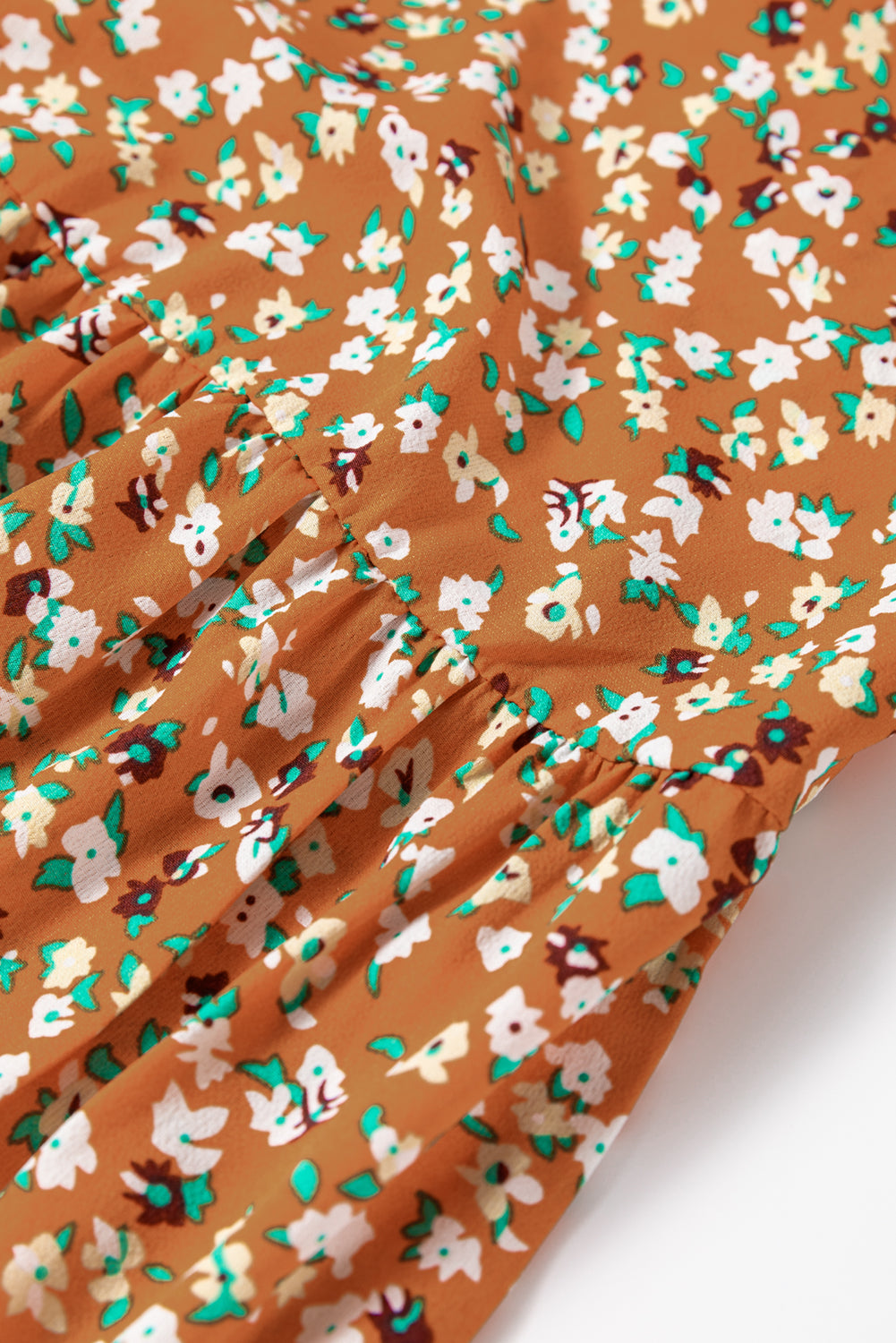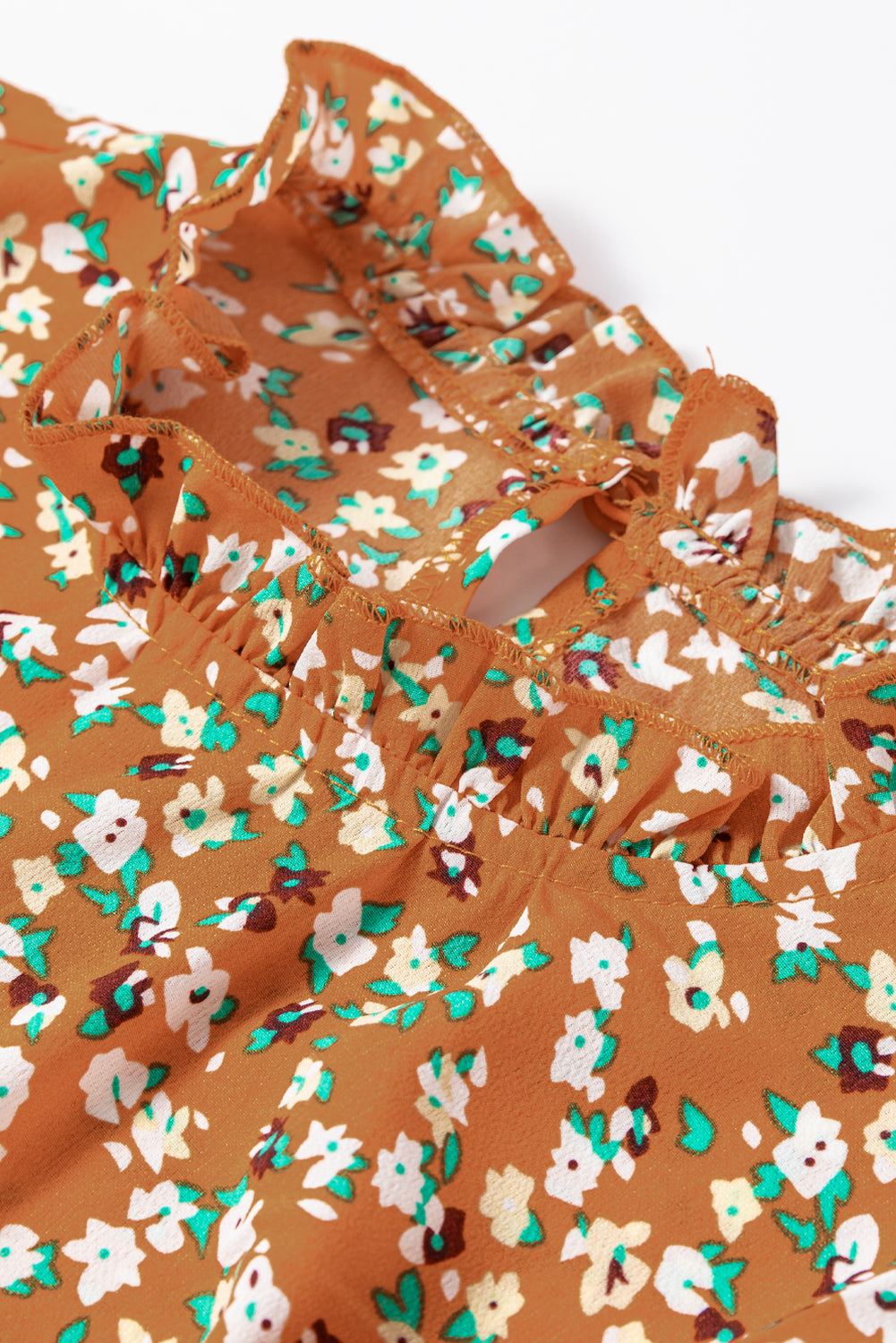 Tag | Occasion Daily, Print Floral, Season Spring, Tops Sale, Style Southern Belle, Color Orange, Sleeve Ruffle Sleeve | Brand | None |