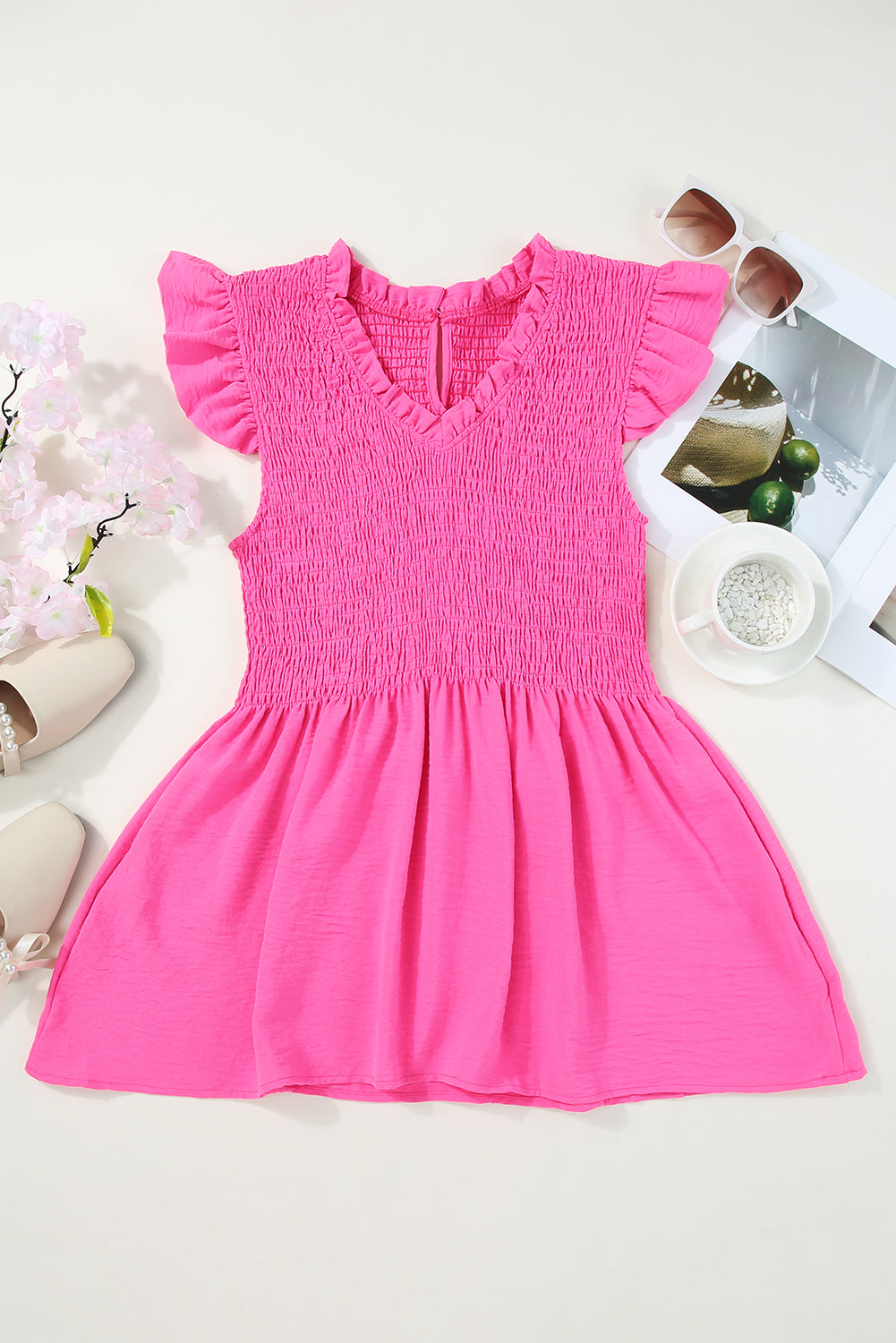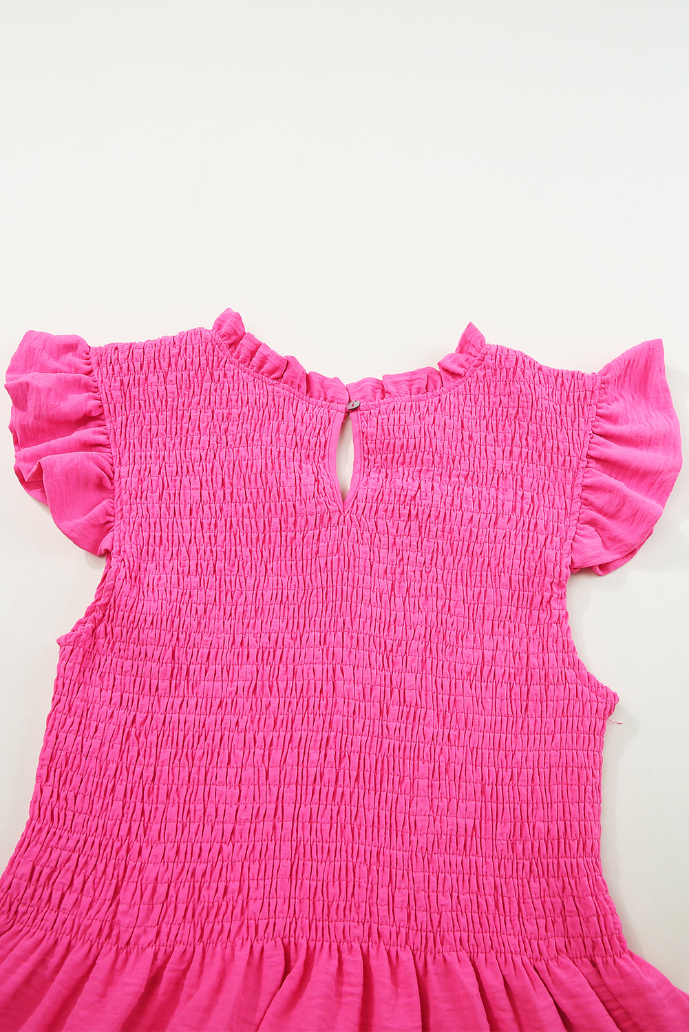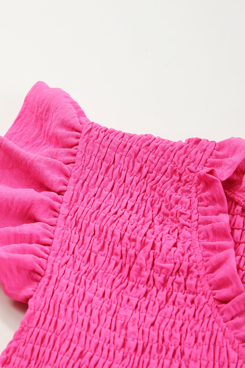 Tag DL Out West, Occasion Daily, Color Pink, Print Solid Color, Season Summer, Craft Smocked, Tops Sale, Silhouette A-Line, Style Southern Belle, Sleeve Ruffle Sleeve Brand None