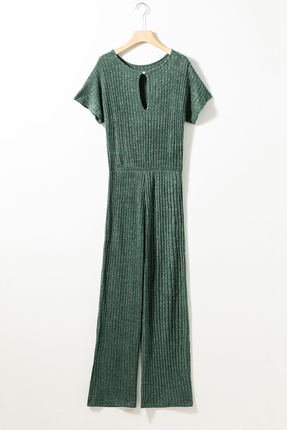 Short sleeves keep this ribbed jumpsuit cool and comfy.