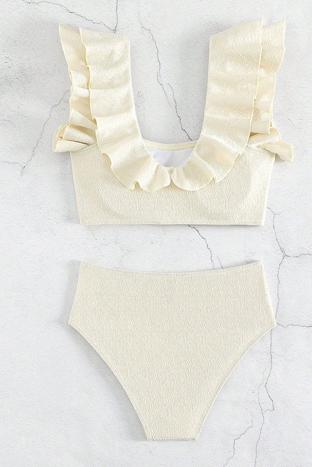 Tag Style Elegant, Occasion Vacation, Print Solid Color, Season Summer, Fabric Textured, Silhouette Bodycon, Color White, Sleeve Ruffle Sleeve Brand None