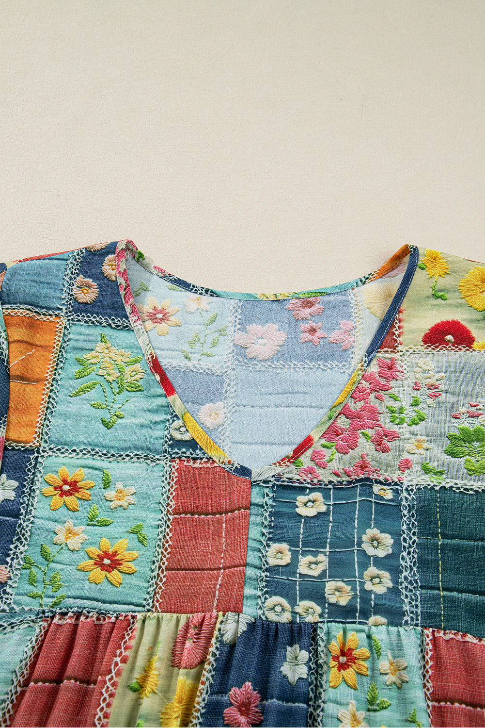 - Unique mix of floral and checkered print for a bold statement dress for women.