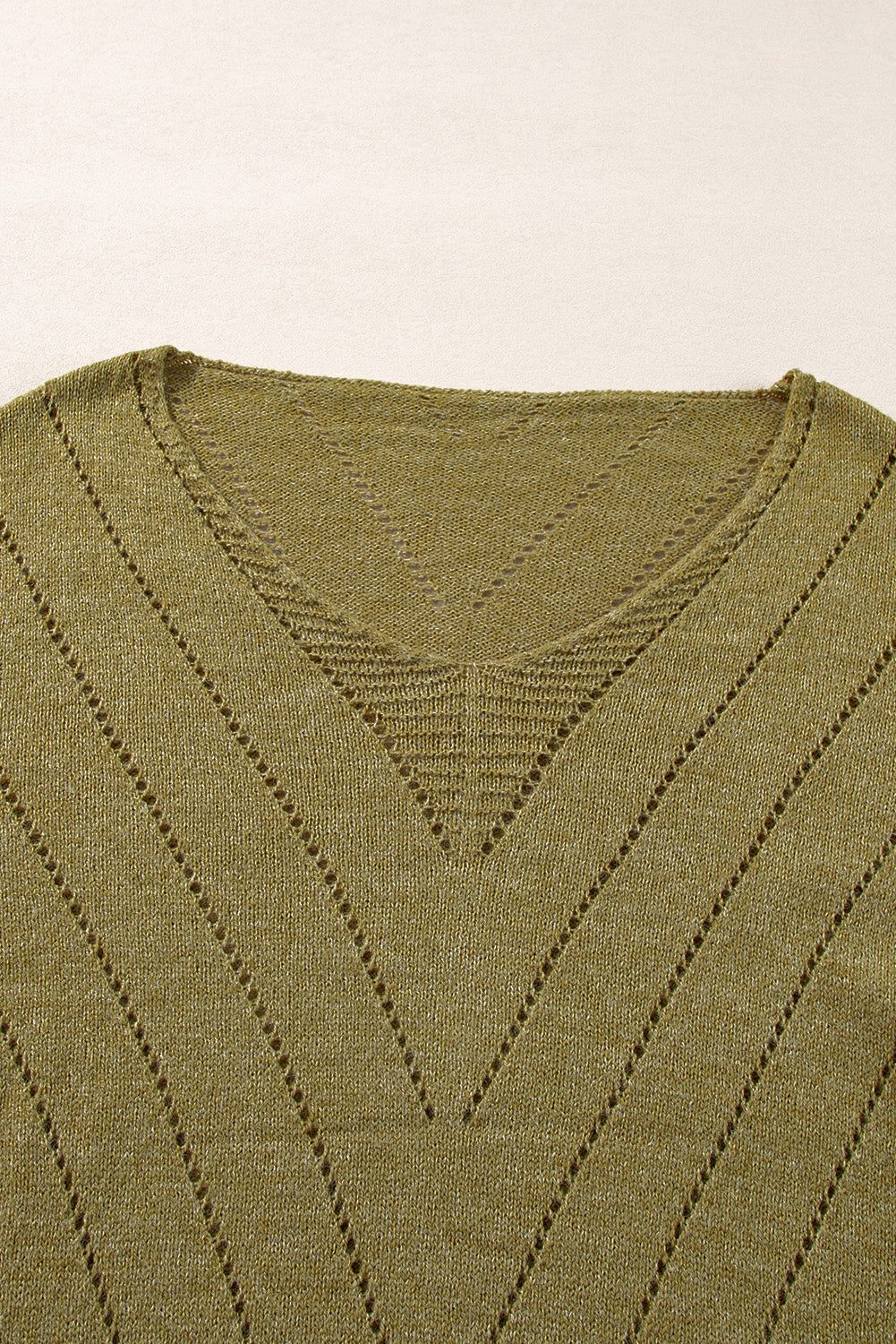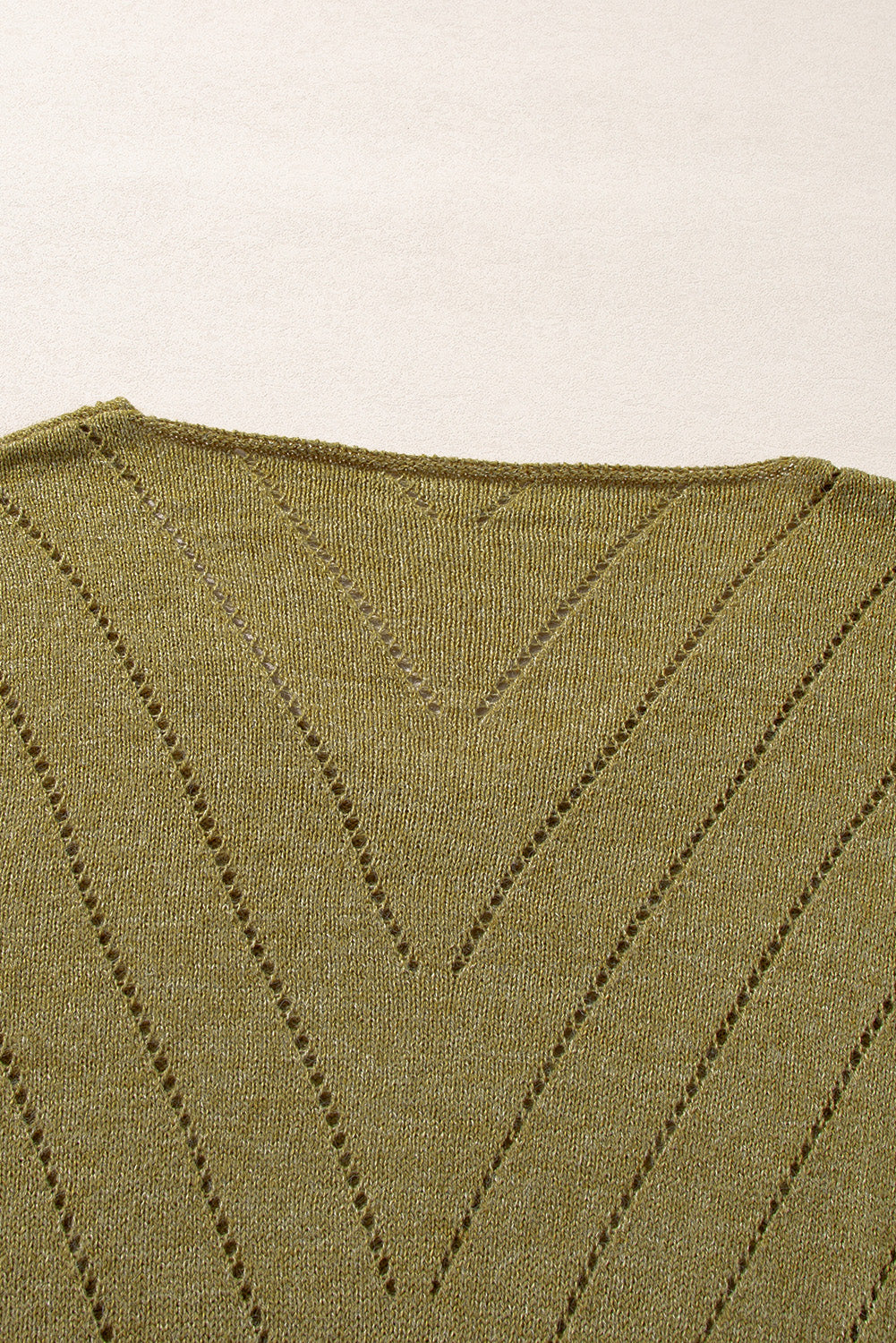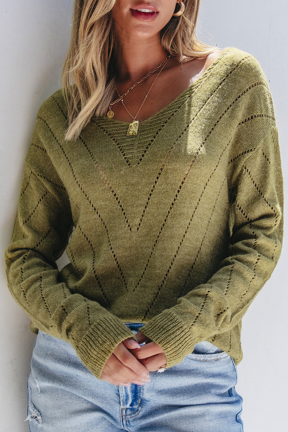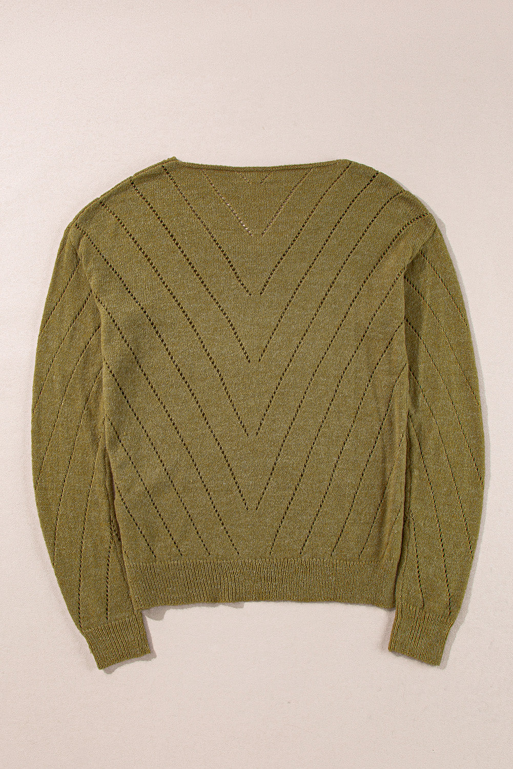 Eyelet detailing brings a feminine flair to this versatile sweater.