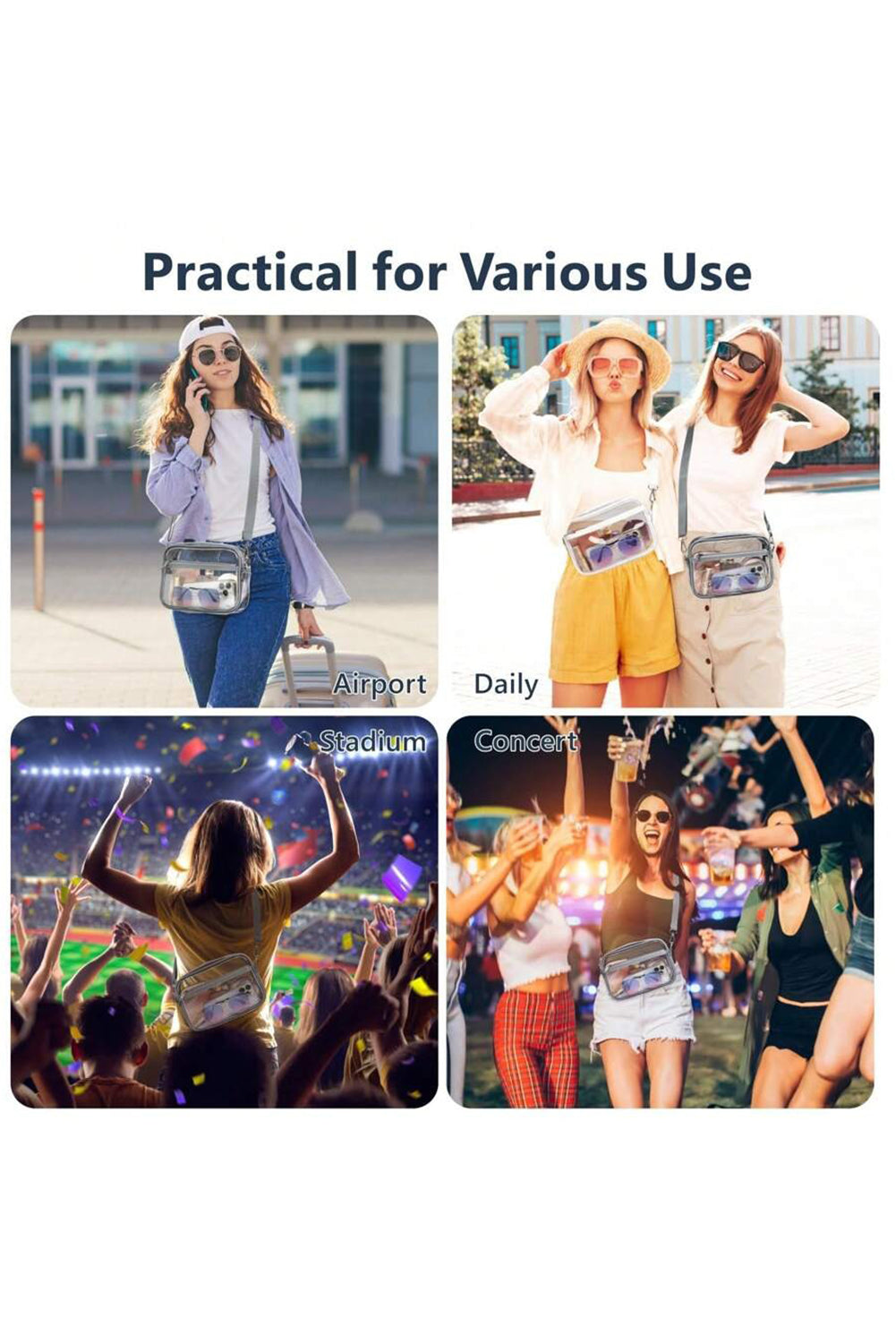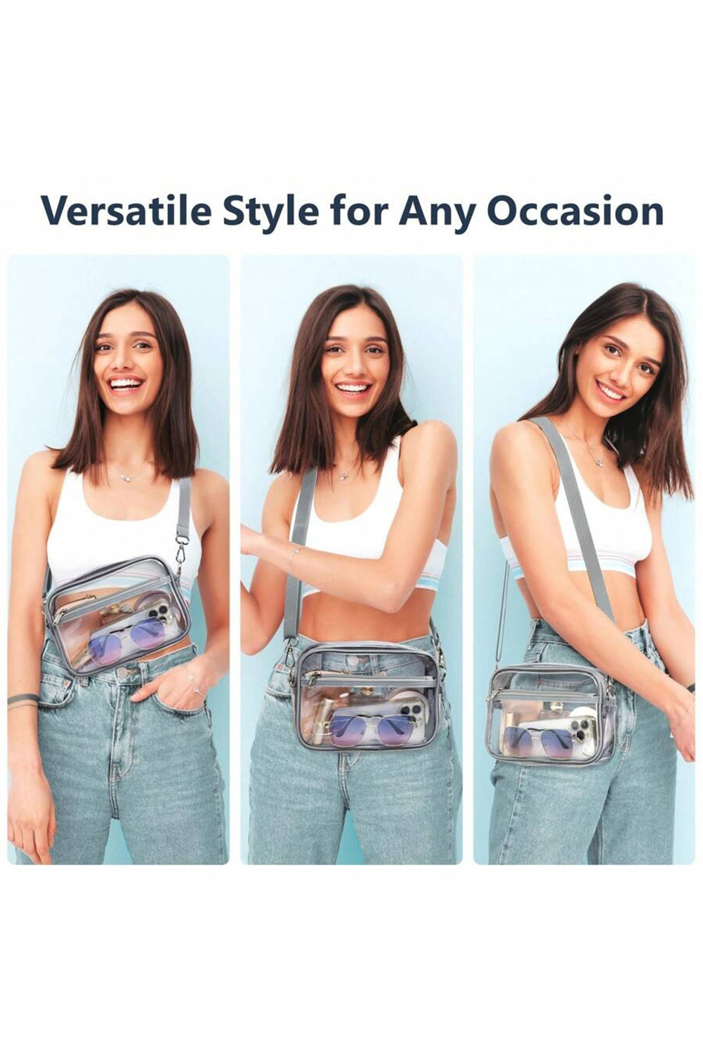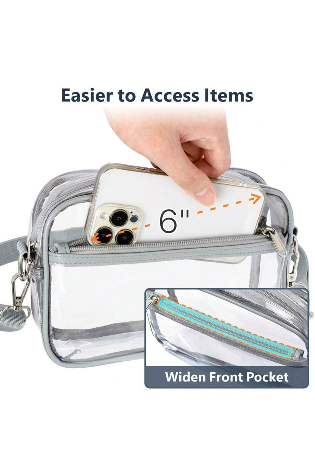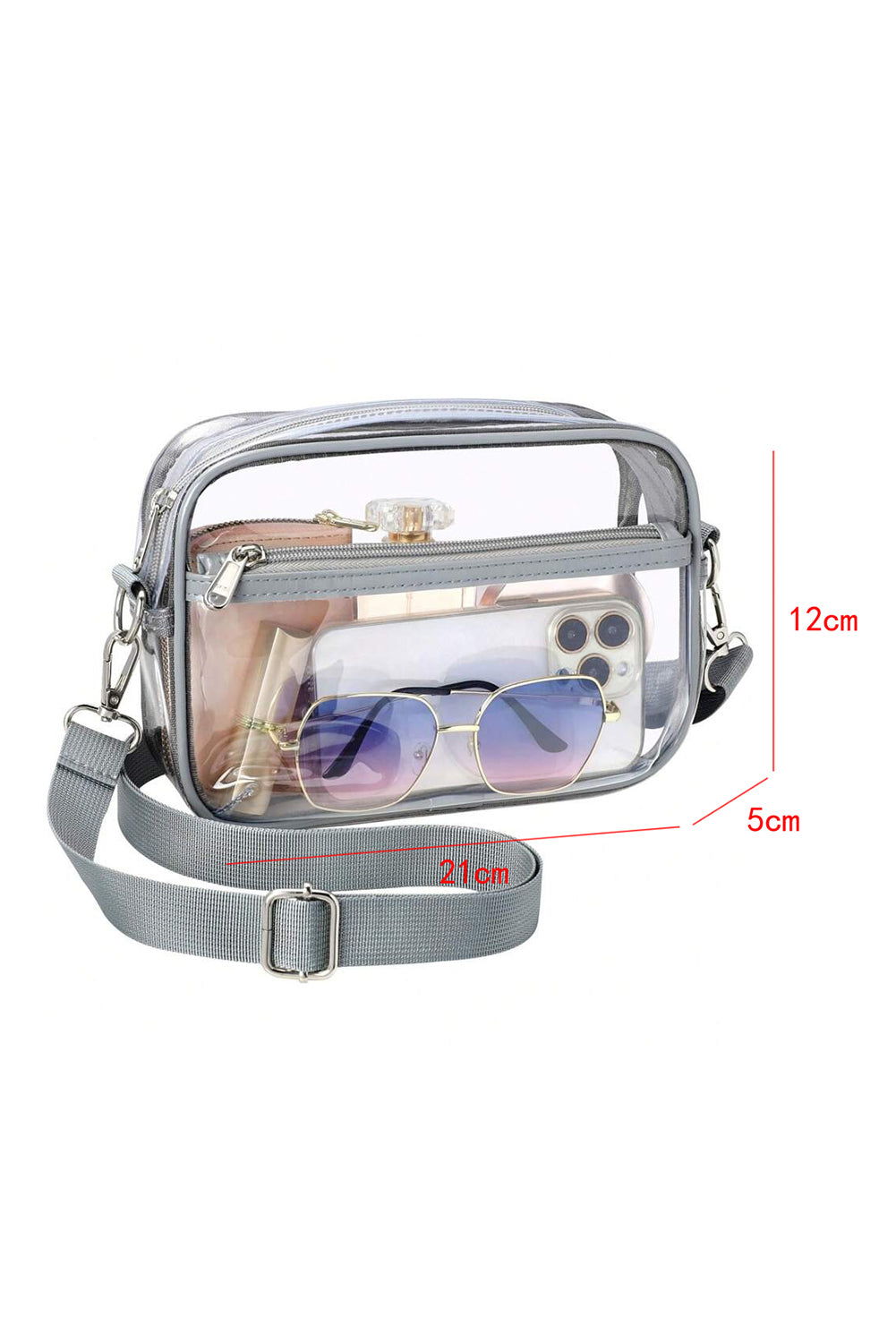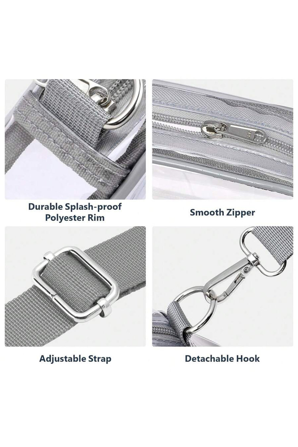 Contrast edges add a stylish detail to the transparent body of the bag.