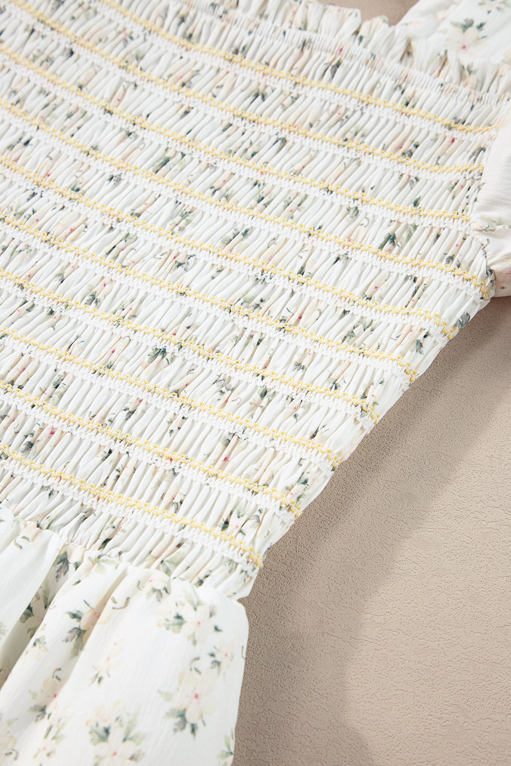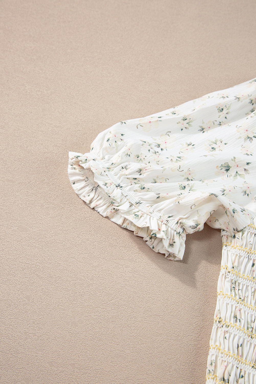 Tag , DL Exclusive, Occasion Wedding, Print Floral, Sleeve Puff sleeve, Occasion Vacation, Season Summer, All In Stock, Craft Smocked, Silhouette A-Line, Style Southern Belle, Color White, Detail Rick Rack, Tiktok Showroom, Occasion Graduation Brand None