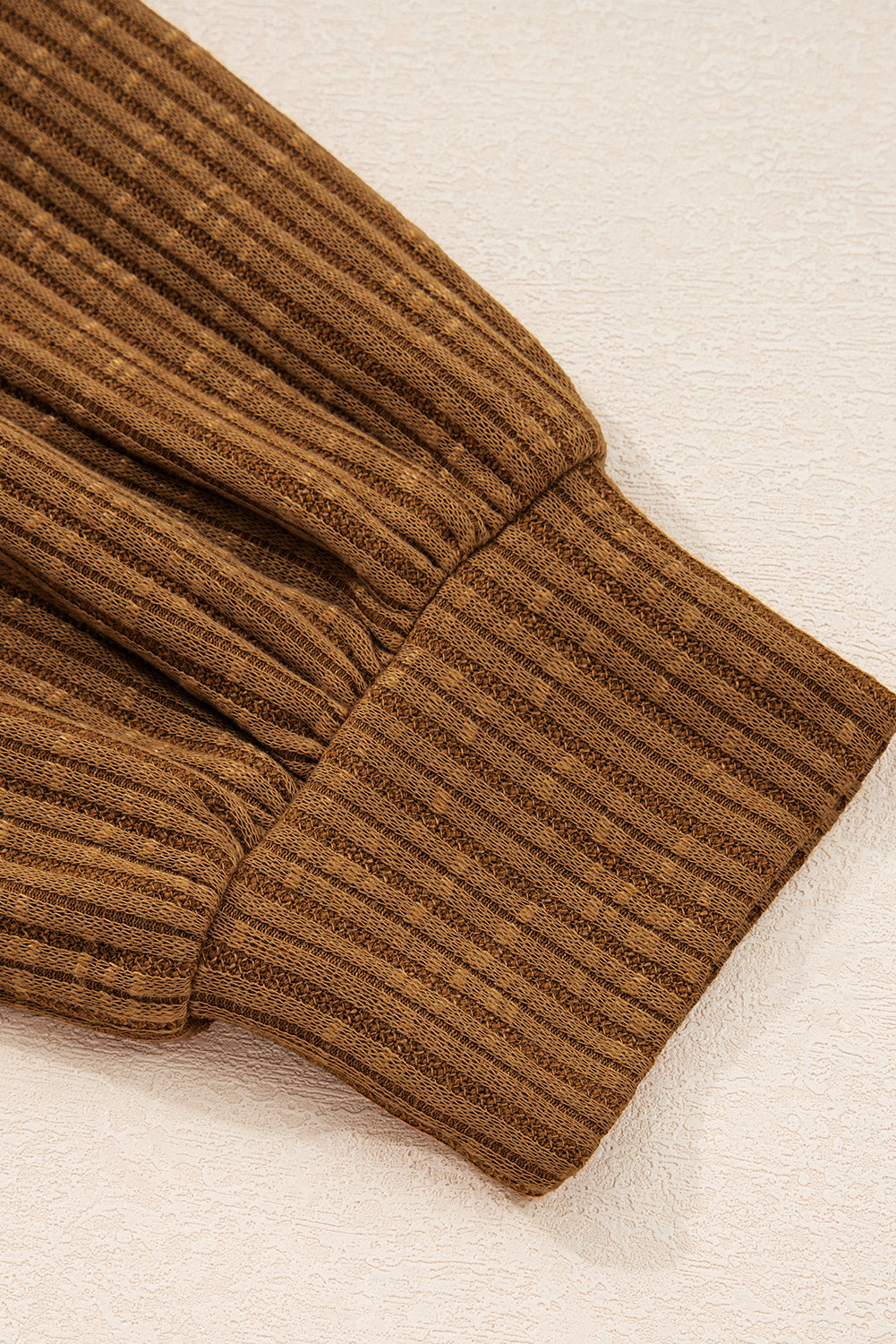 Ribbed puff sleeves create a feminine slouchy silhouette.