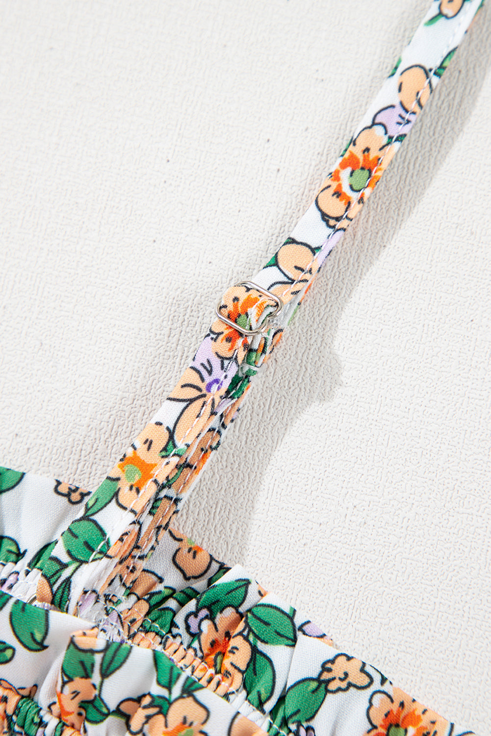 The spaghetti straps and ruffle details add a playful and romantic touch.
