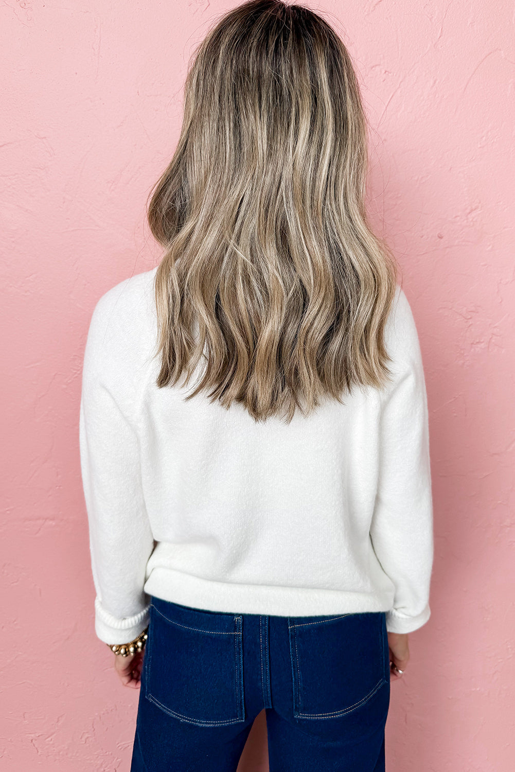- This graphic sweater with MERRY letter is perfect for the holiday season.